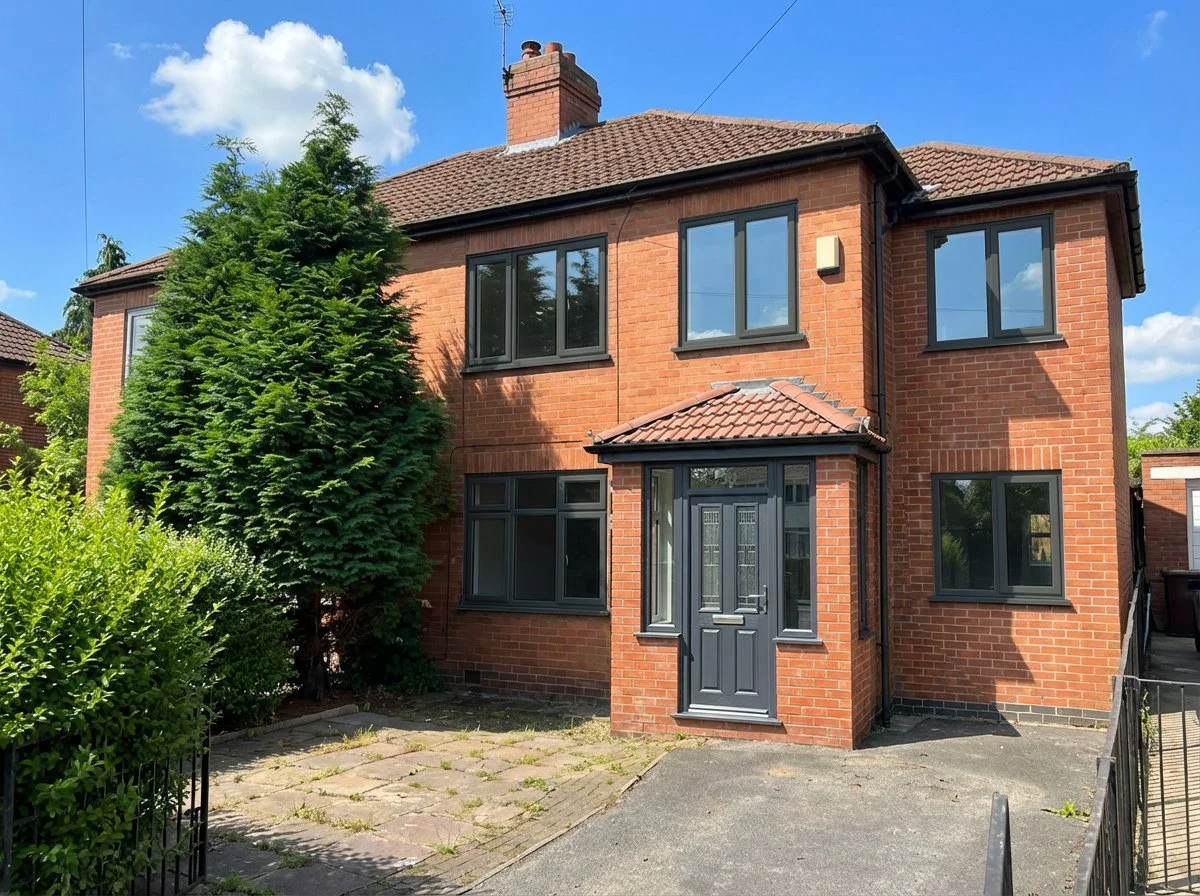 This project involved a carefully integrated double-storey side extension, adding two generous bedrooms at first floor and a spacious kitchen extension at ground level. A new front porch improves arrival and street presence, while anthracite-framed windows throughout unify the old and new into a cohesive, contemporary elevation. All works were granted full planning approval by the local council, resulting in a fully modernised family home with significantly enhanced space, light, and functionality.